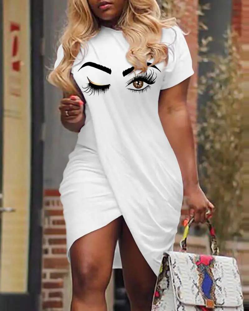 EYES PRINT ASYMMETRICAL CASUAL DRESS