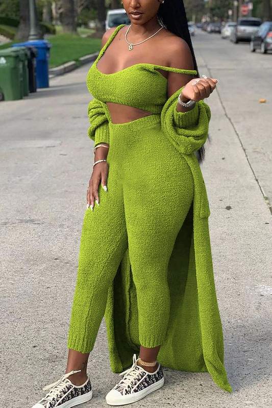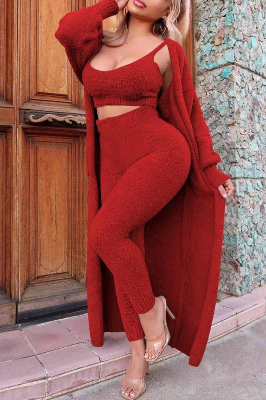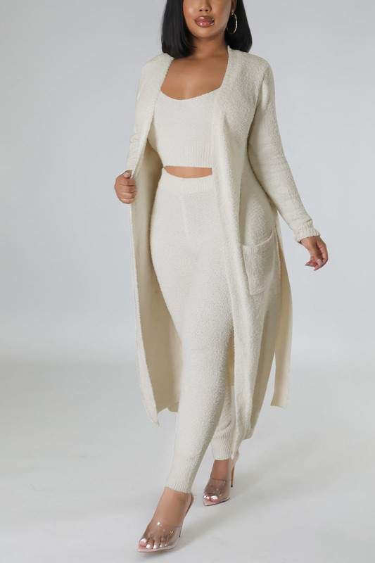 Knitted leggings pants, knitted cami top, knitted cardigan set,3 pieces set