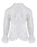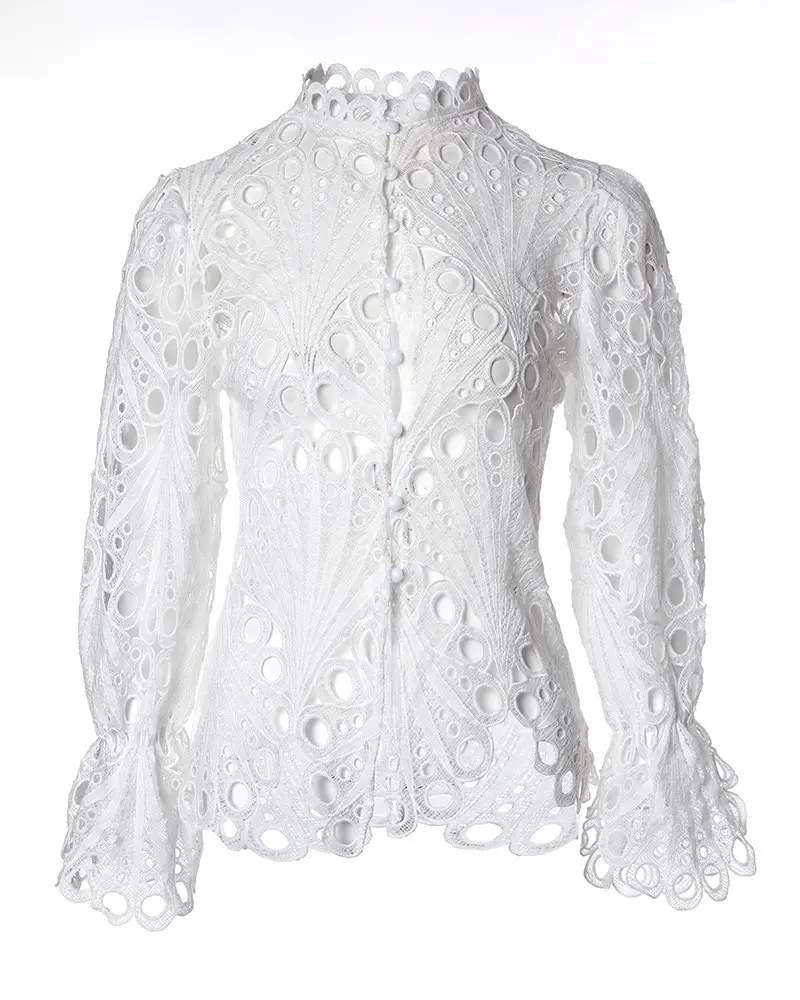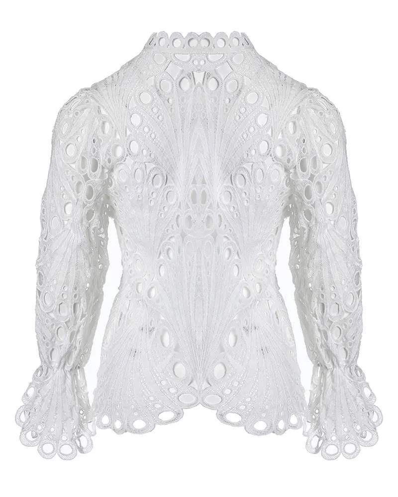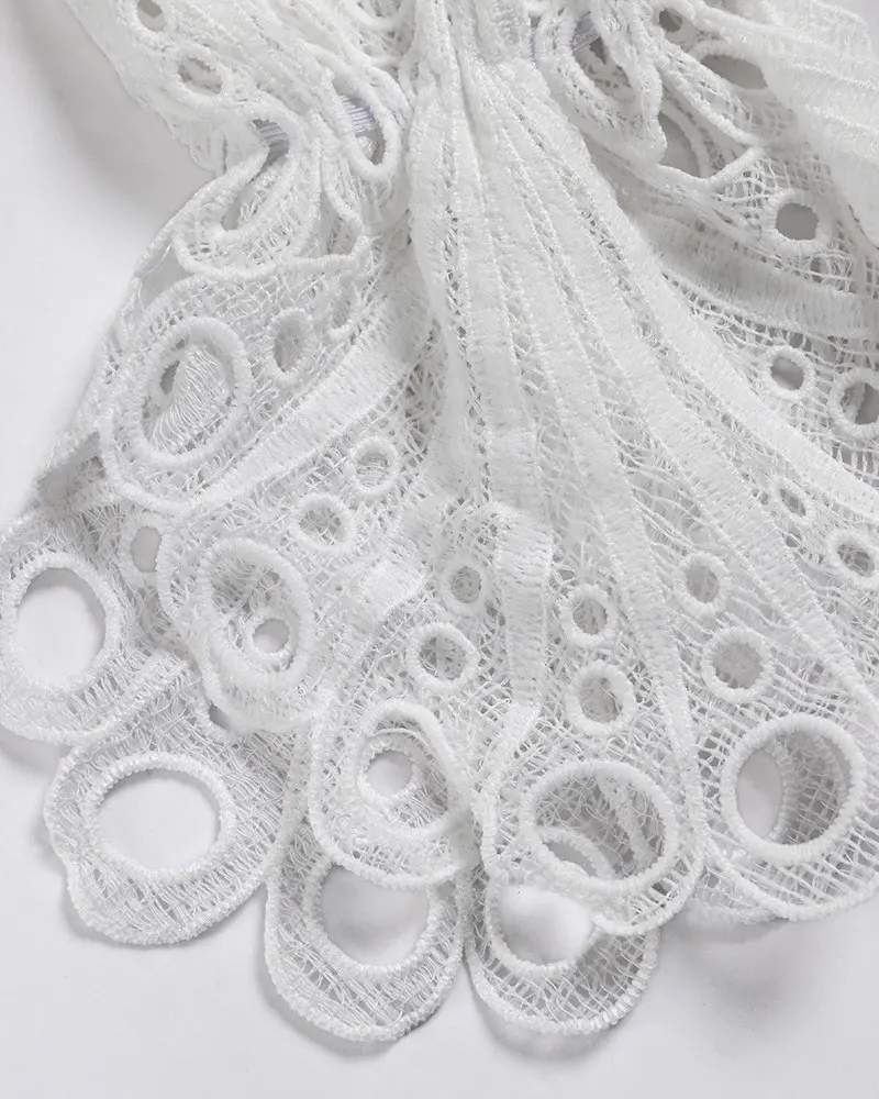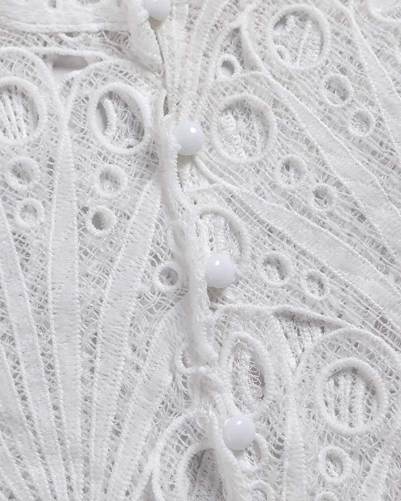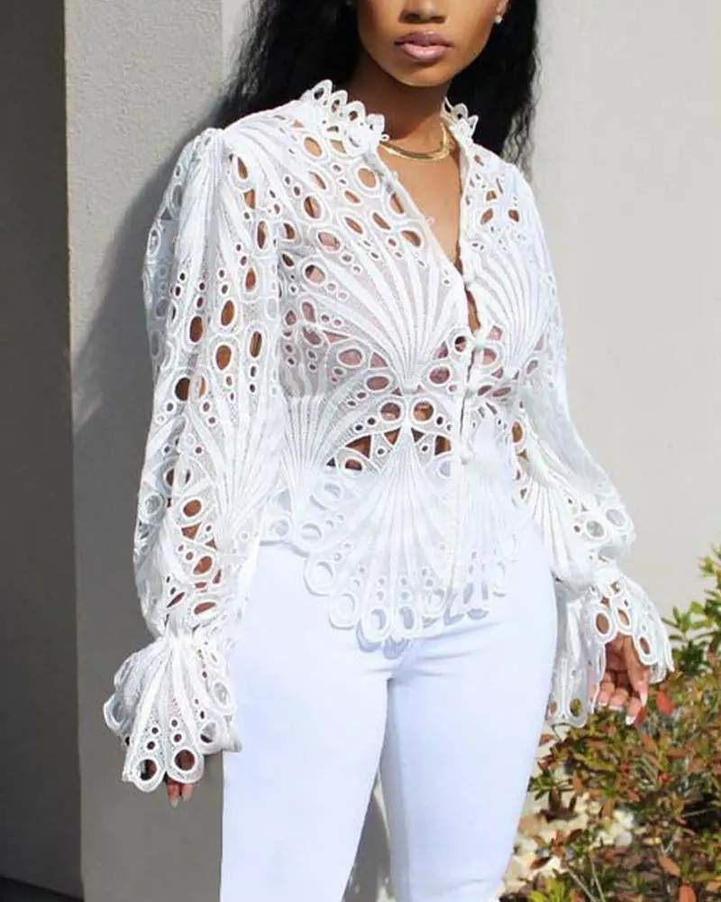 This elegant lace blouse features intricate cut-out designs, crafted from lightweight, breathable fabric for comfort. Its flattering fit suits all body types. Perfect for summer occasions, this trendy top pairs well with jeans or skirts, offering versatility and style in one piece.Versatility: Perfect for casual outings or dressy occasions
