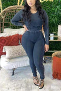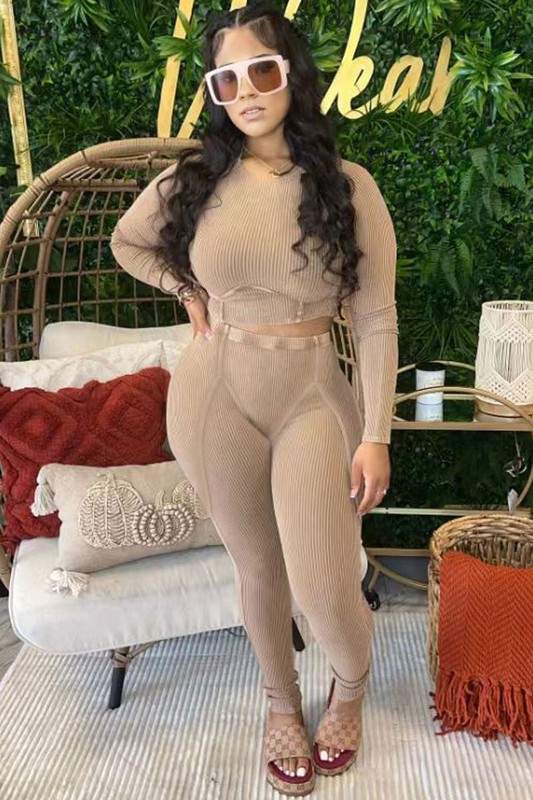 Long sleeve crop shirt, stretch tights set, basic shirt and tights set