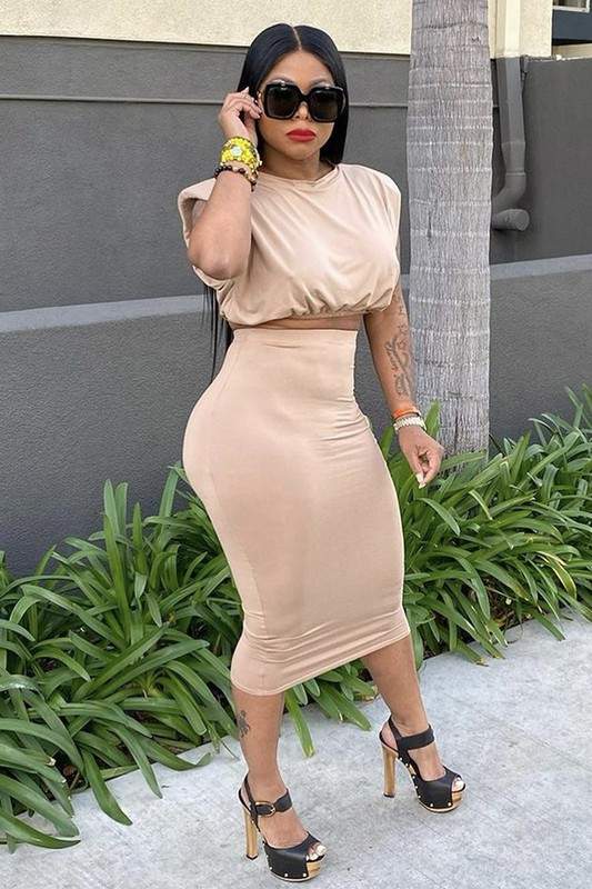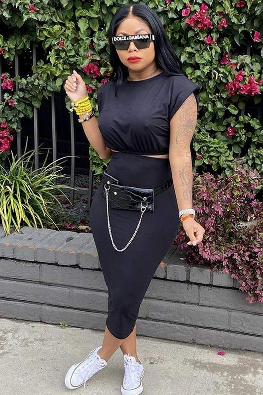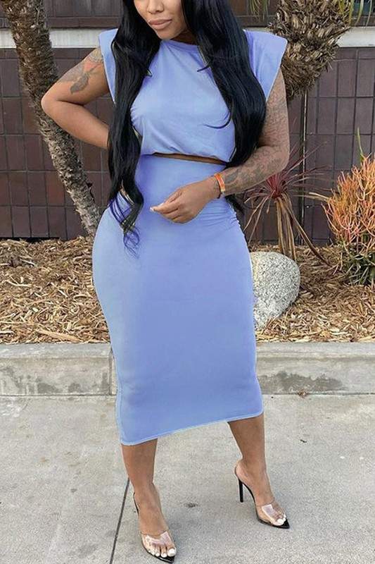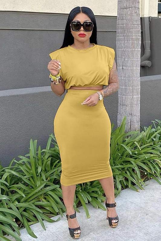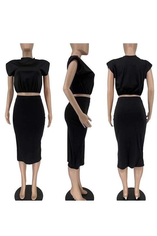 Padded Shoulder Sleeveless Top and Long Skirt Set