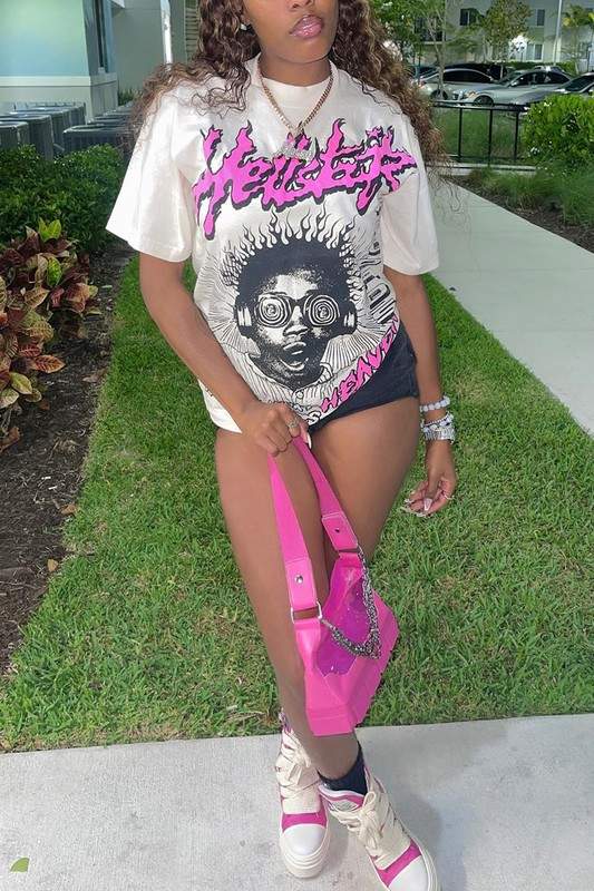 This stylish women's graphic t-shirt features a vintage design with a retro theme, perfect for casual outings. Made from soft, breathable fabric, it's paired with comfortable black shorts for a laid-back look. Available in multiple sizes, this outfit ensures both comfort and style, ready for your everyday adventures.Versatile Style: easy to pair with shorts or jeans