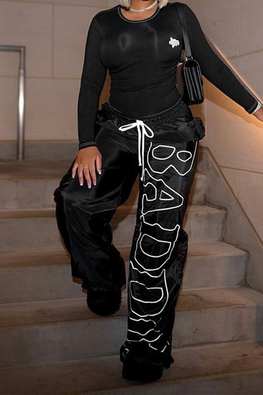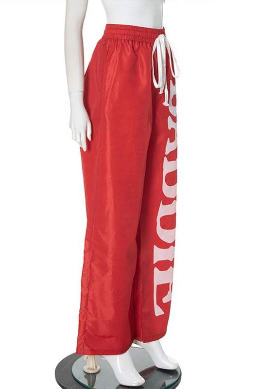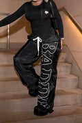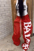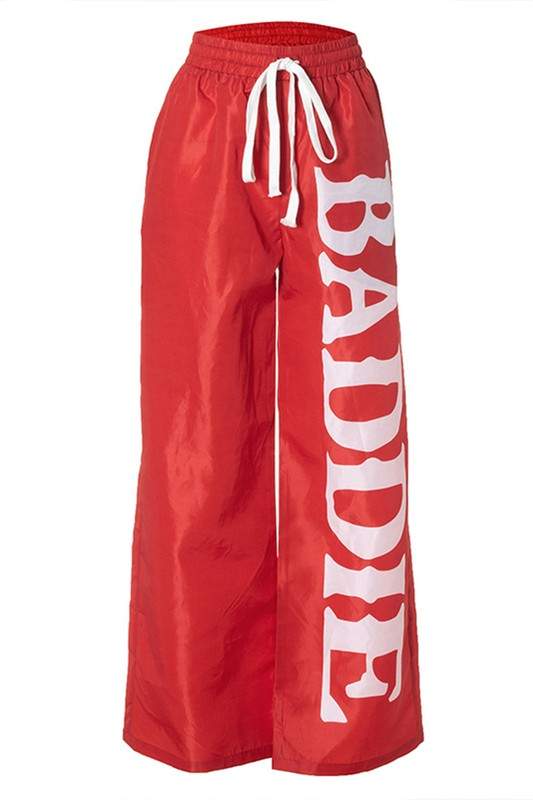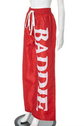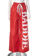 Wide-Leg Jogger Pants with 'BADDIE' Print - High Waist, Drawstring Closure, Relaxed Fit, Streetwear Style, Perfect for Casual Outfits, Athleisure, and Urban Fashion