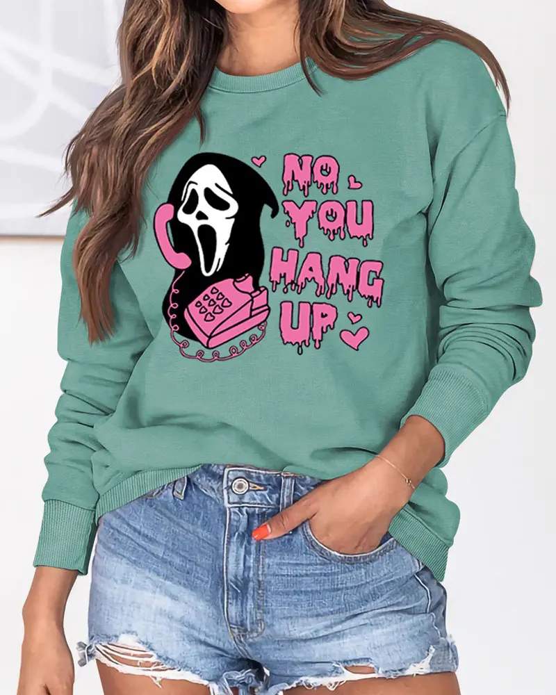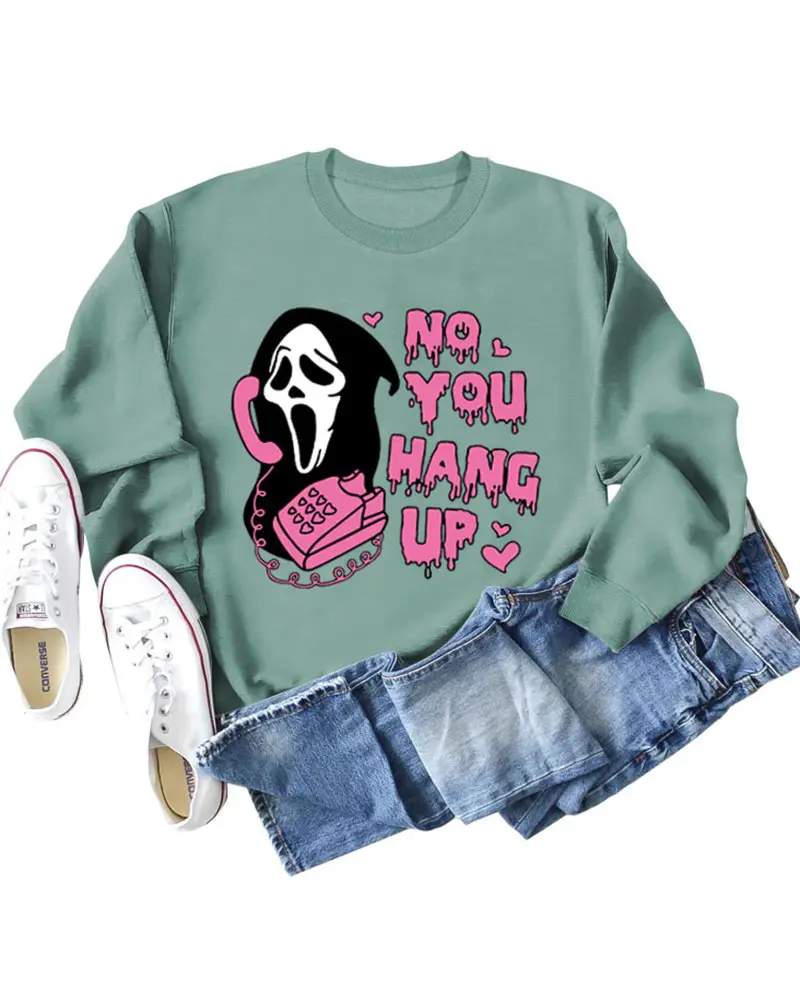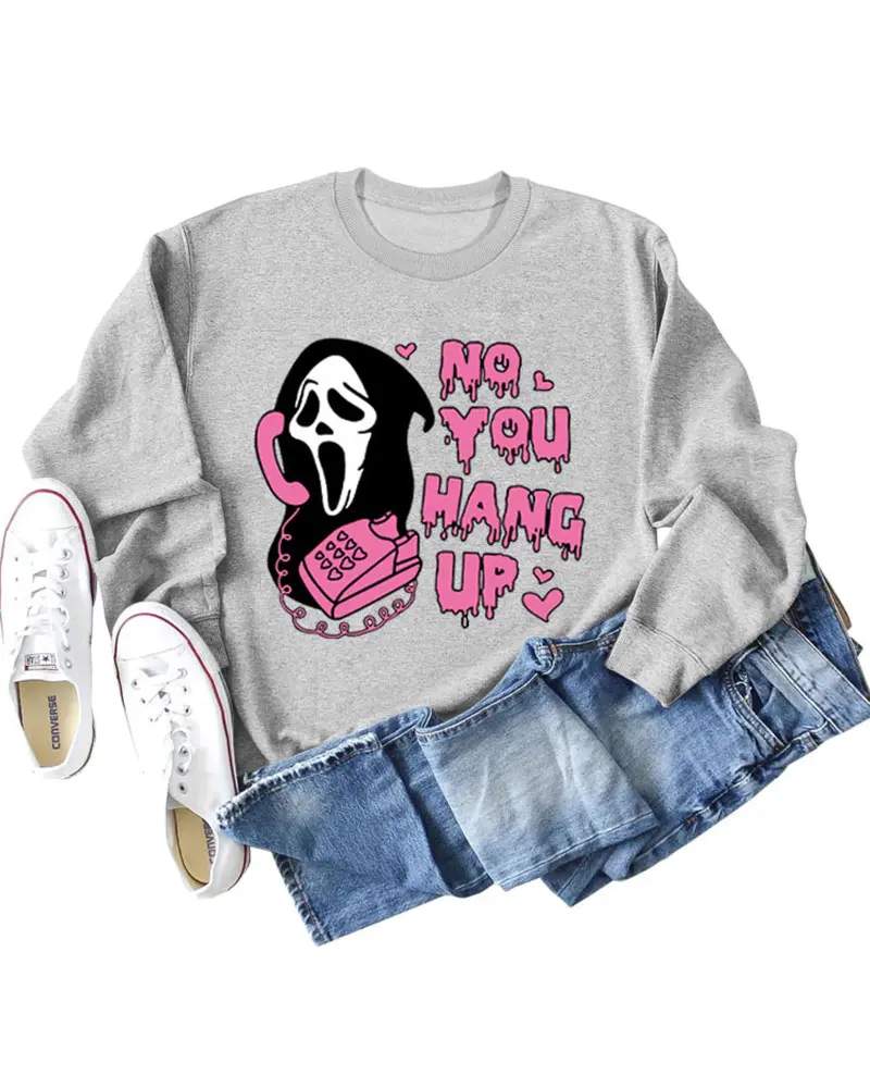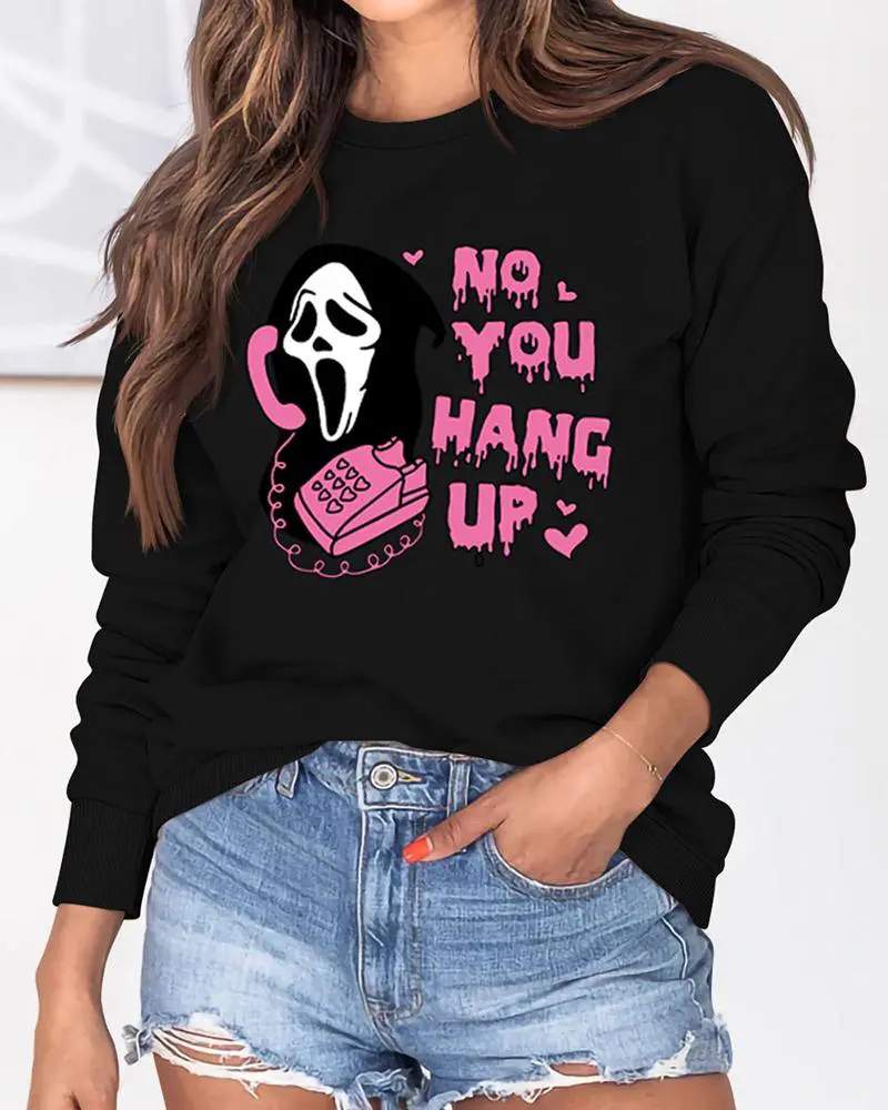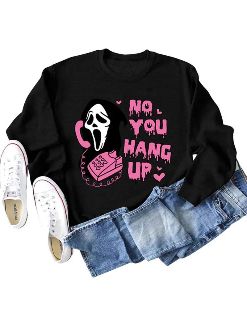 HALLOWEEN NO YOU HANG UP GRAPHIC PRINT O NECK SWEATSHIRT