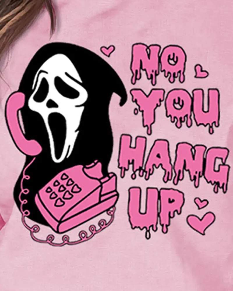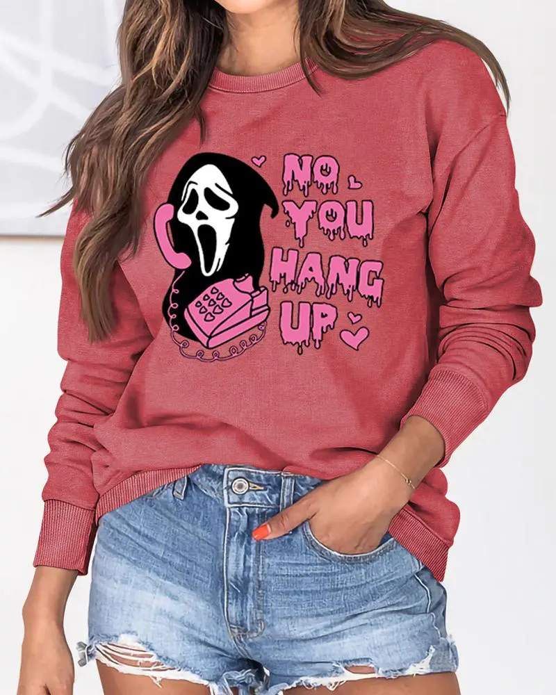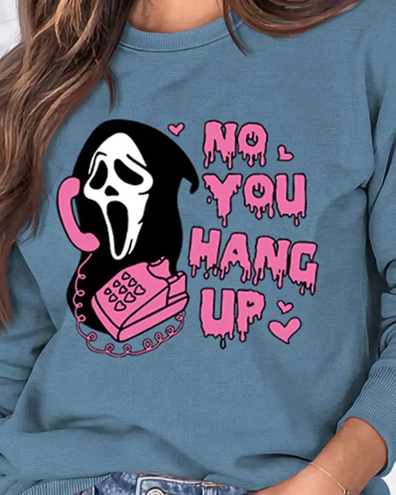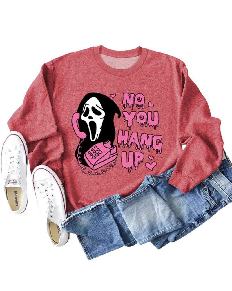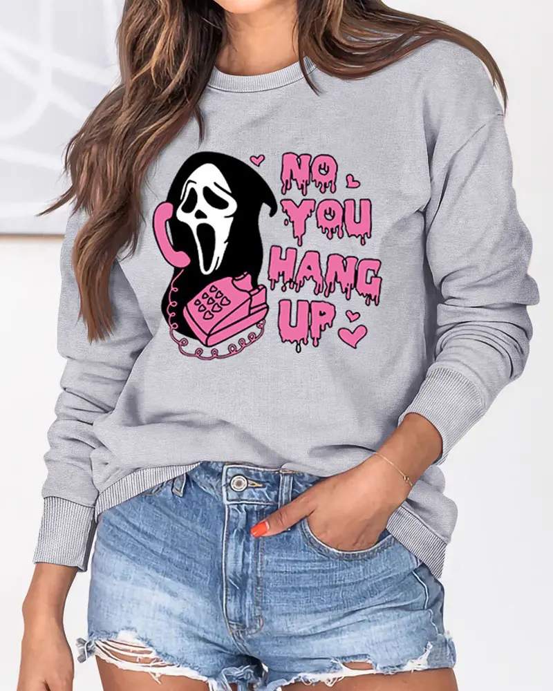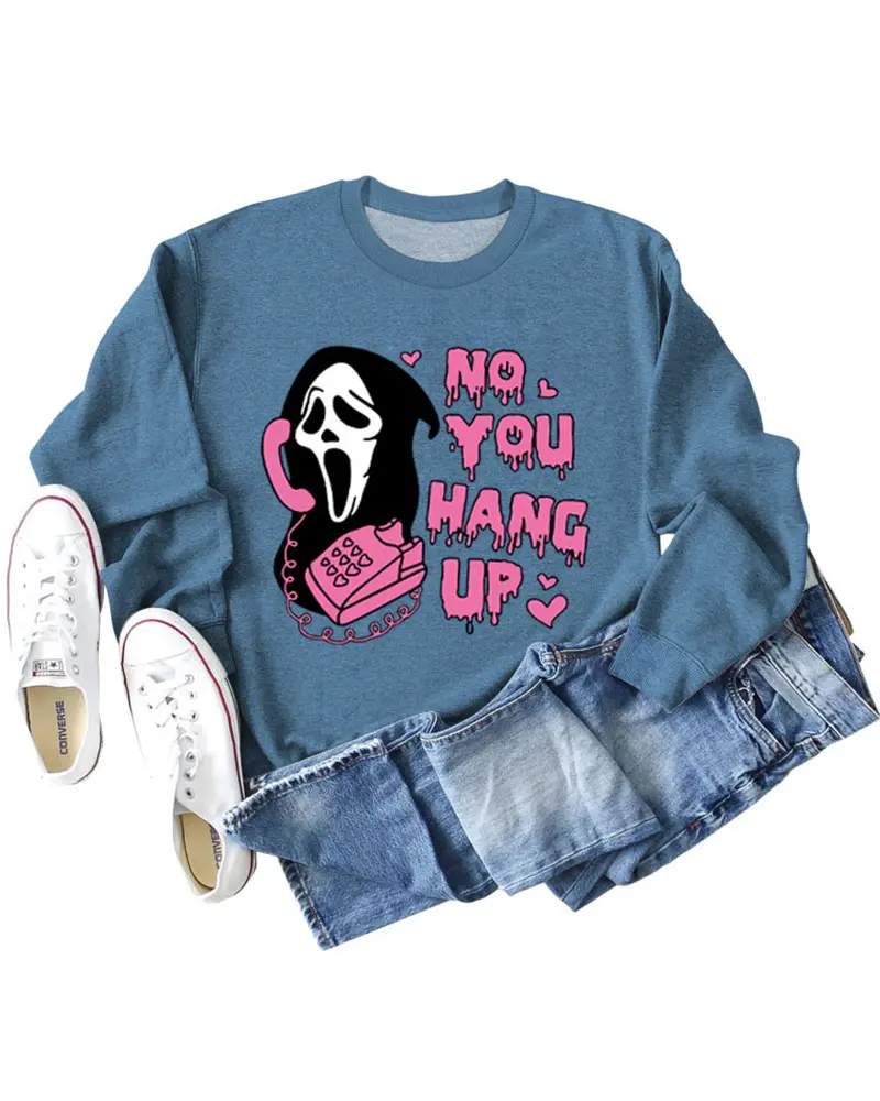 HALLOWEEN NO YOU HANG UP GRAPHIC PRINT O NECK SWEATSHIRT