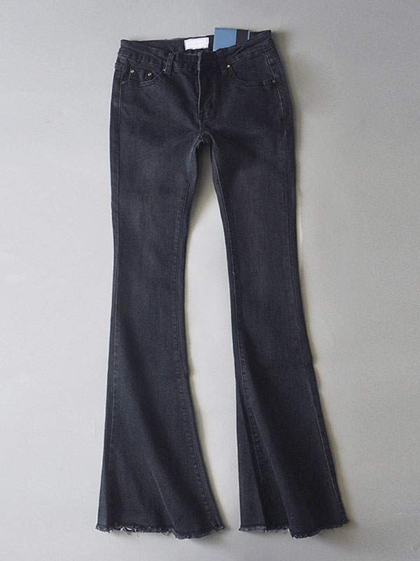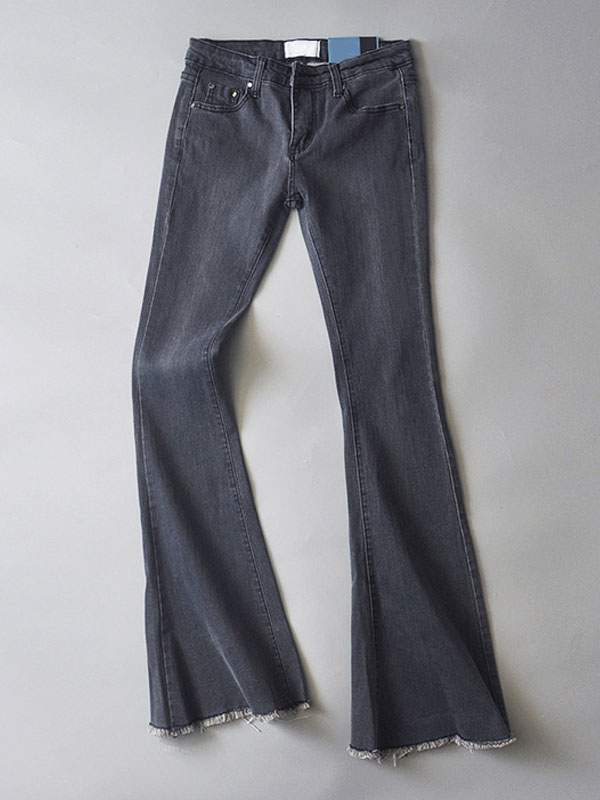 Flared Jeans with Distressed Hemline