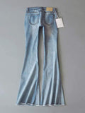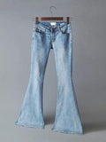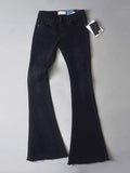 Discover stylish flared jeans, crafted from high-quality denim. These women's jeans feature a high waist design, bell-bottom cut, and distressed hemline. Perfect for casual outings or a trendy look. Available in multiple sizes, designed to offer a flattering fit for all body types.Flattering Fit: suitable for multiple body types