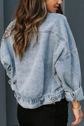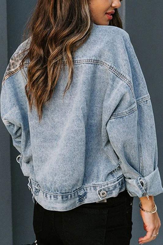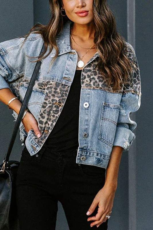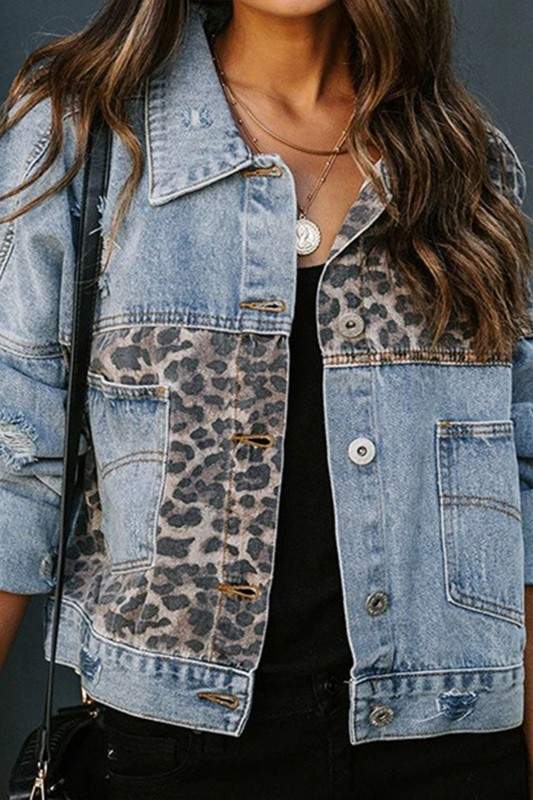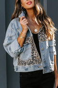 Upgrade your casual wardrobe with this Leopard Patchwork Denim Jacket. This stylish jacket combines classic denim with bold leopard print patches for a unique and edgy look. Featuring button-up closure, front pockets, and a relaxed fit, it's perfect for layering over your favorite tops and tees for a chic, street-style outfit.