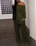 Matching Set: Relaxed Fit Off Shoulder Top & Pants