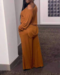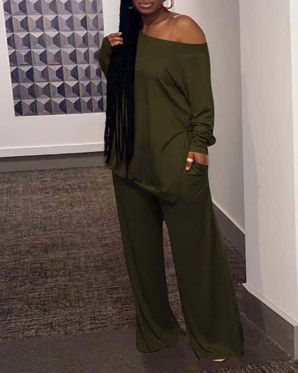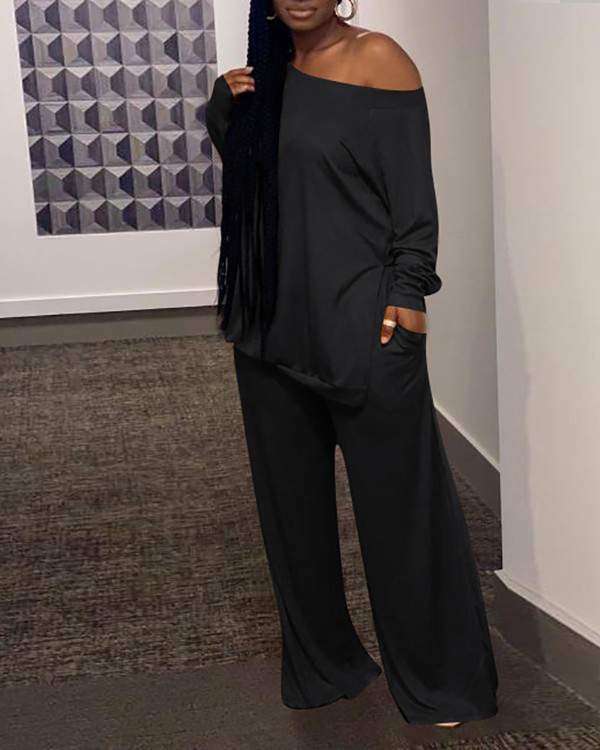 Explore the ultimate relaxation with our off shoulder loungewear set. This two-piece outfit features comfortable wide leg pants and a soft top, crafted for all-day wear. Available in multiple sizes, it's perfect for lounging or casual outings. Practical pockets add functionality to your style.High-Quality Fabric: soft and breathable material