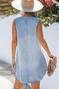 Semi Round V-Neck Sleeveless Patchwork Linings Loose A-Line Cut Mini Dress