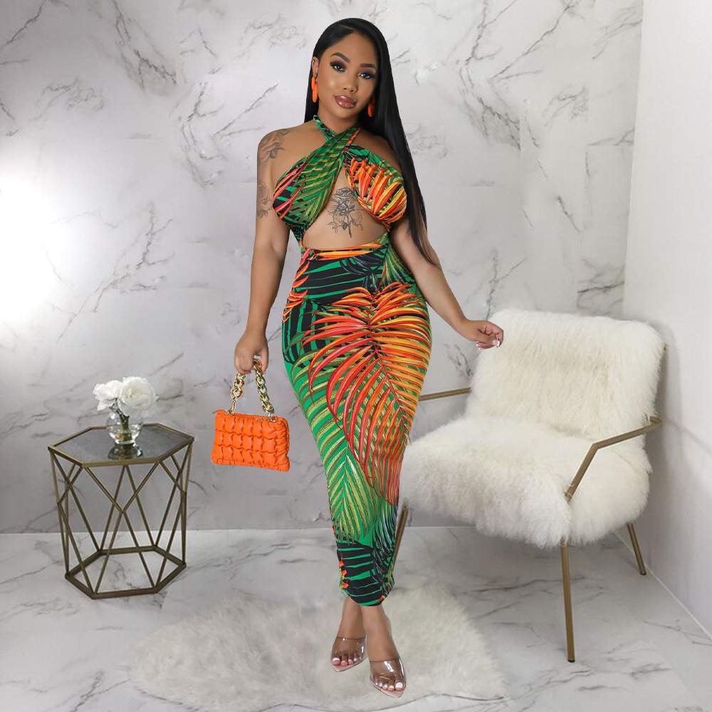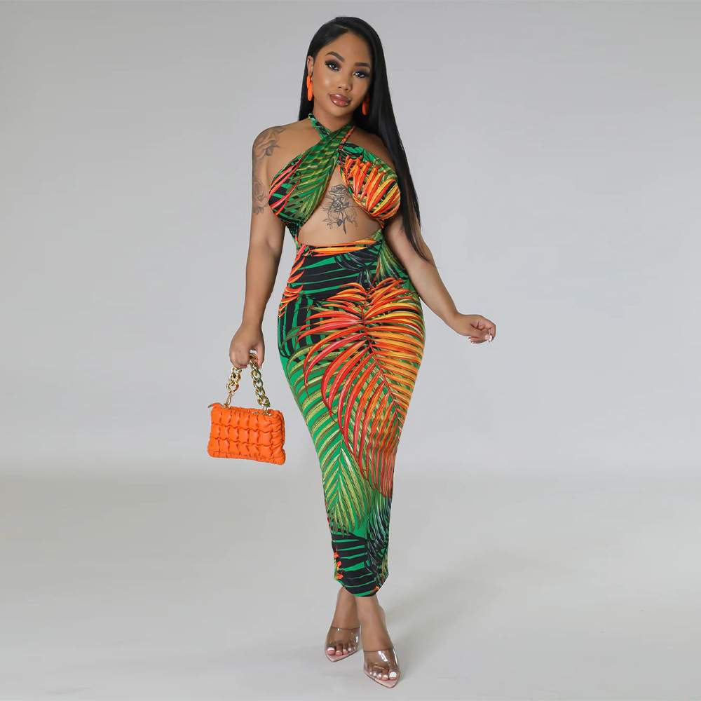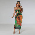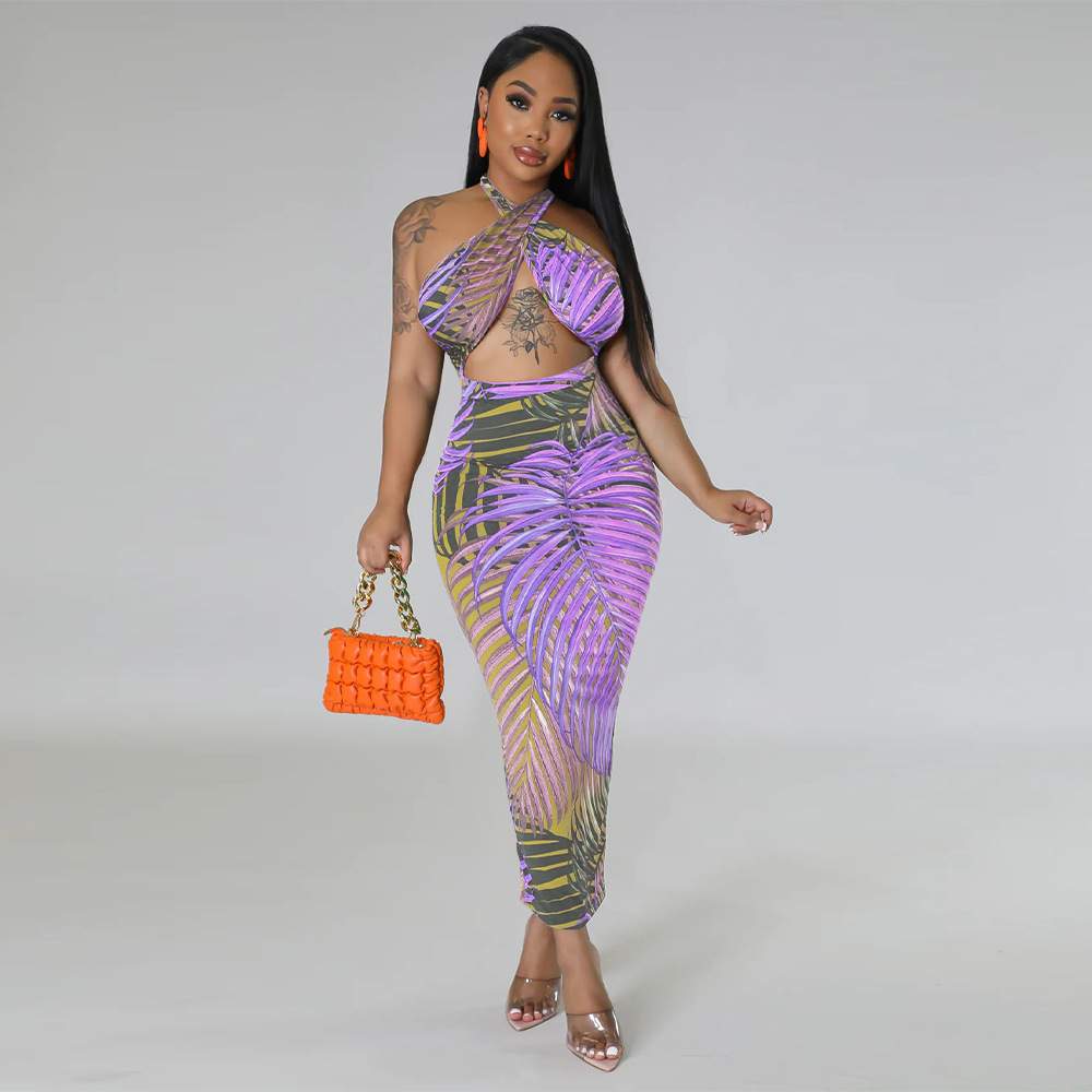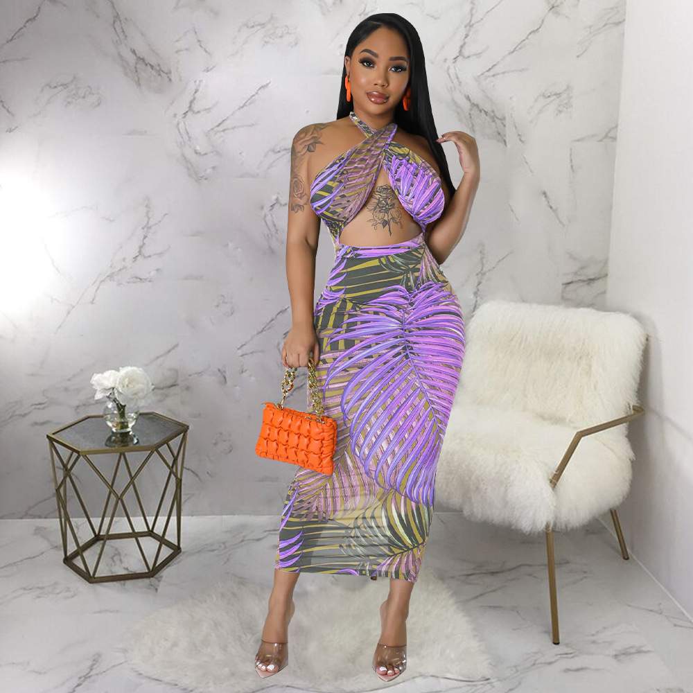 This women's tropical print maxi dress features a halter neck design, high slit for added flair, and bodycon fit that flatters every shape. Perfect for summer parties, vacations, or casual outings. Made from lightweight, breathable fabric, available in multiple sizes, pairs well with stylish accessories.Flattering: Bodycon fit accentuates curves