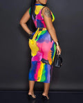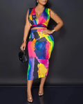 PLUNGE TIE DYE PRINT TOP HIGH WAIST SKIRT SET