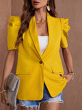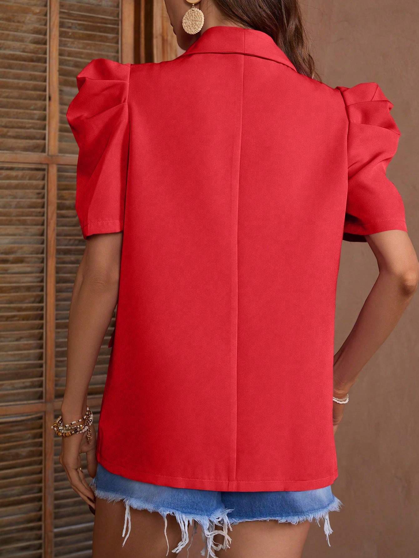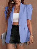 This stylish puff sleeve blazer is a must-have for your summer collection. Made from lightweight, breathable fabric, it features trendy puff sleeves and padded shoulders for an elegant silhouette. Pair it with denim shorts for a casual yet fashionable look. Available in multiple sizes, machine washable for easy care.Stylish detail: padded shoulders enhance silhouette