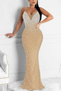 This backless evening dress showcases a stunning design with sparkling sequins that catch the light effortlessly. Crafted from premium materials for a luxurious feel, it’s tailored to perfection for a flattering silhouette. Available sizes ensure the ideal fit for every occasion. Perfect for weddings, parties, or upscale events. Go ahead, make a statement in this elegant gown.Versatile style: Ideal for weddings, parties, or galas