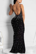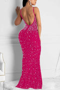backless sequin evening dress